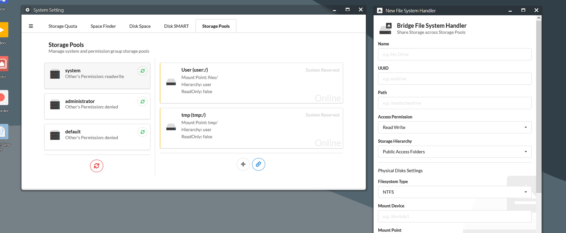Benennen Sie die storage.json.example in storage.json um und starten Sie arozos. Die erforderlichen virtuellen Speicherlaufwerke werden entsprechend eingehängt.